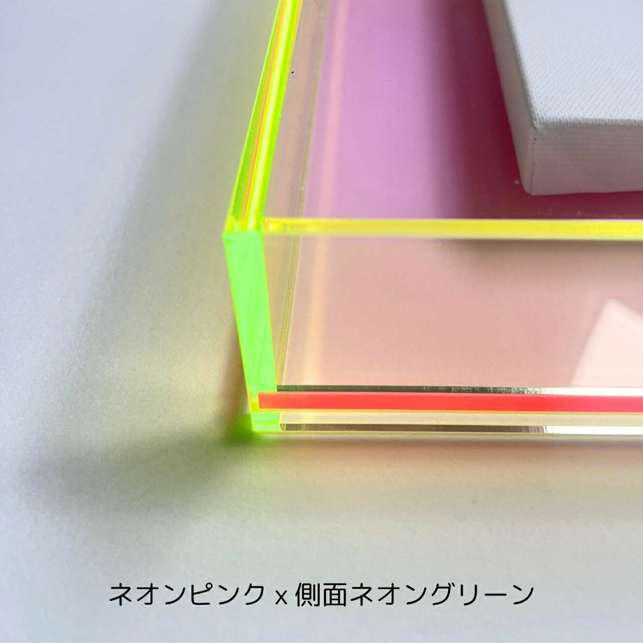 結果は、強烈なインパクトと面白さを兼ね備えた現代アートへ。 フレーム自体が発光しているかのようなネオンカラーが、インクの彩度をさらに高め、空間で強烈な主張を放ちます。「珍しい!」「かわいい!」と一瞬で目を奪う、ギャラリー映え間違いなしの組み合わせです。