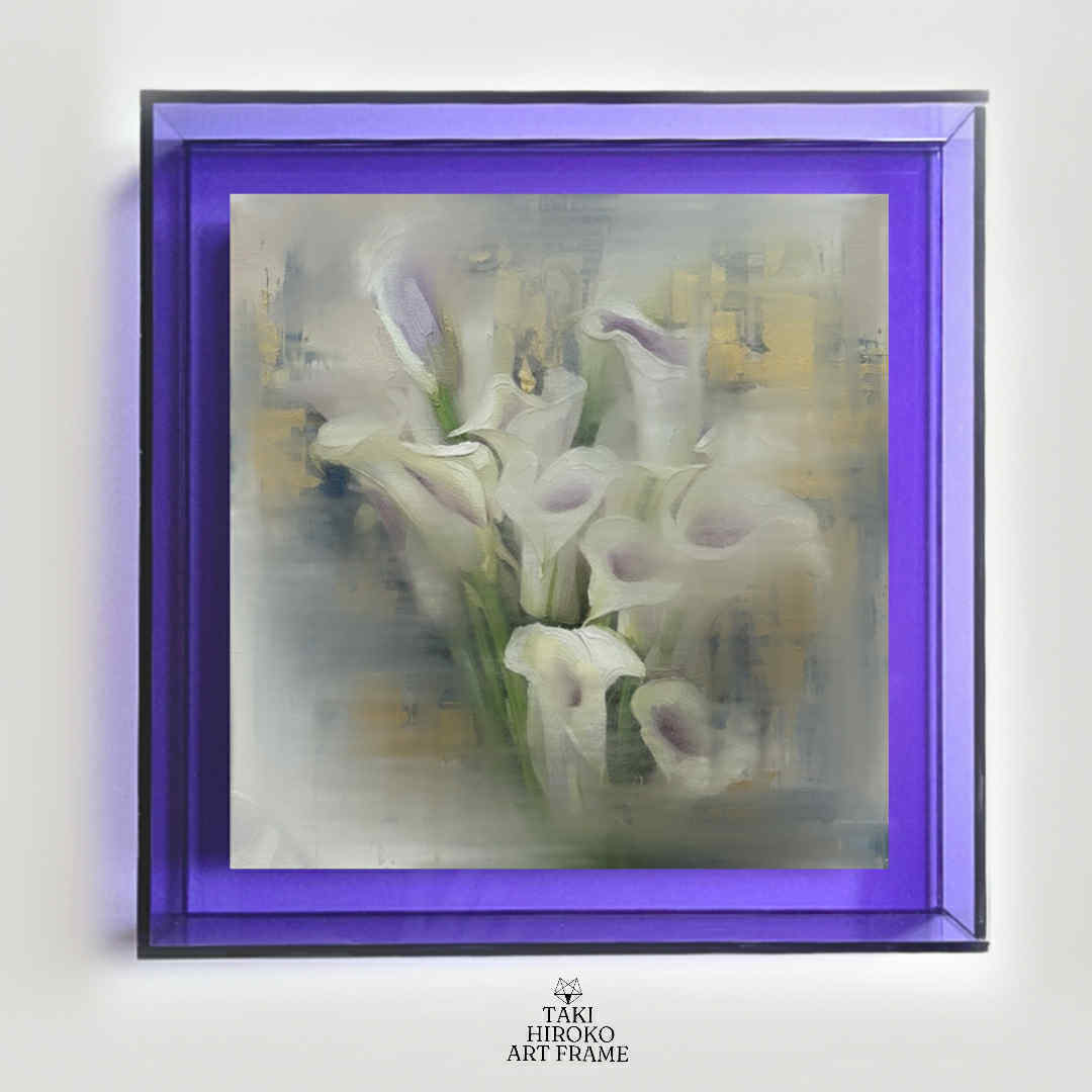 アート作品を単なる保護ではなく一つの表現として完成させるために設計されたボックスフレームです。パープルは、フレームとしては大変珍しい色でありながら、その色が持つ高貴な品格と無限の表現力を兼ね備え、作品の存在感を格上げします。
