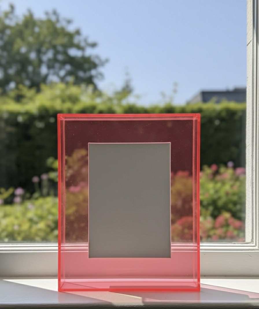 アート作品を単なる保護ではなく一つの表現として完成させるために設計されたボックスフレームです。特にネオンピンクは、その色が持つエッジィな魅力と親しみやすさを兼ね備え、作品の個性を最大限に引き出します。