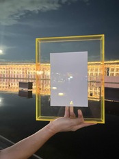 ボックスフレームはスライド式で、作品の入れ替えが簡単。背面と側面の色をカスタムできるため、展覧会のコンセプトに合わせた演出が可能です。シンプルな取り付け方式により、アートを手軽に額装でき、側面カラーをカスタムすることで作品と空間に個性的な存在感を生み出します。